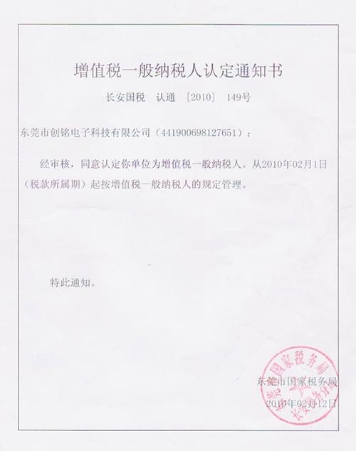 一般納稅人資格證書