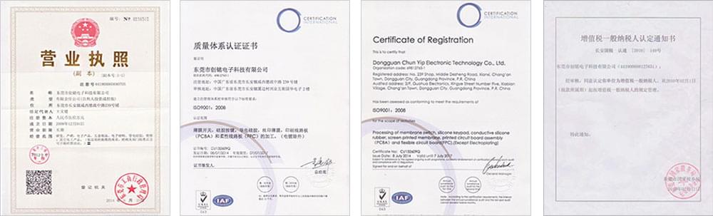創(chuàng)銘一直注重薄膜開關(guān)的使用材質(zhì)、產(chǎn)品品質(zhì)、按鍵壽命、生產(chǎn)交期等等,發(fā)展期間2016年創(chuàng)銘電子獲得“中國AAA級誠信企業(yè)”榮譽證書和“重合同守信用示范企業(yè)”榮譽證書;同年注冊‘創(chuàng)銘’‘chunyip’等商標;足以表明創(chuàng)銘電子對客戶的重視程度,對品質(zhì)要求的嚴格,對創(chuàng)銘這個品牌的信譽做保護。